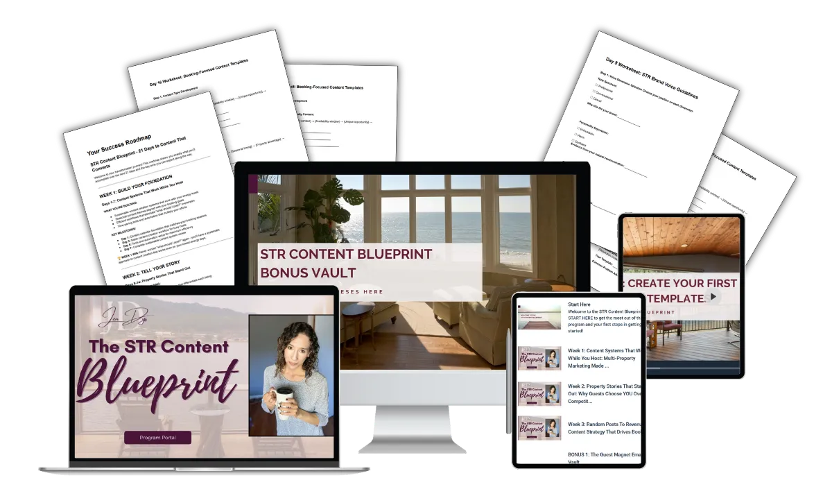 The content systems you'll build are designed for busy hosts. Batch creation. Strategic planning. Templates that speed up your process. Plus, once your systems are in place, they work even when you're busy hosting, dealing with turnovers, or handling guest communications.