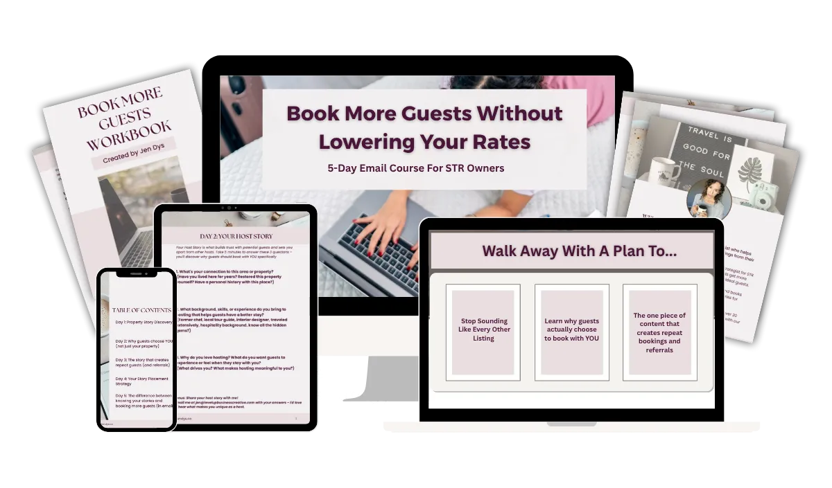 I created this free email course to share exactly what successful STR owners know about standing out - without lowering rates or buying more ads.